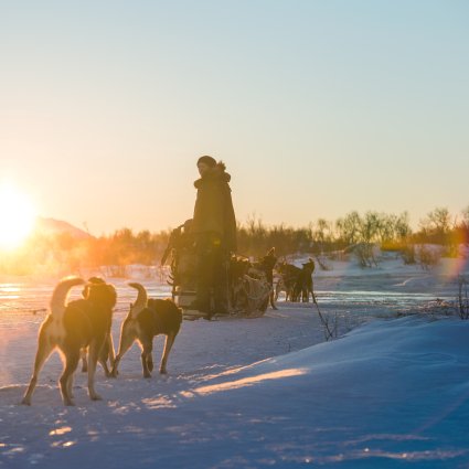 4 hours, incl. 25 minutes transfer each way and approx. 45-60 minutes dog-sledding.